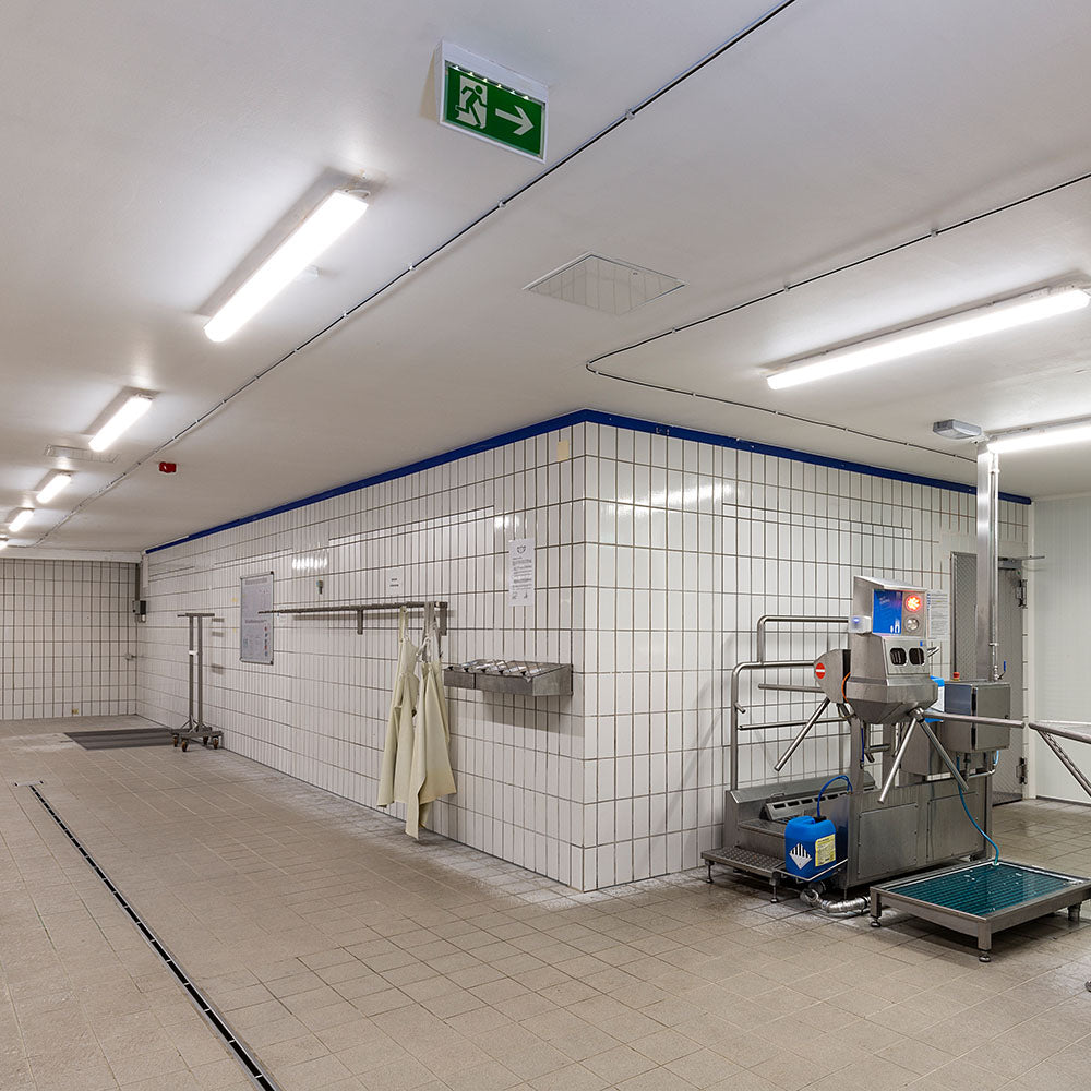 - Diese LED-Leuchte ist für den Einsatz in lebensmittelverarbeitenden Betrieben geeignet.